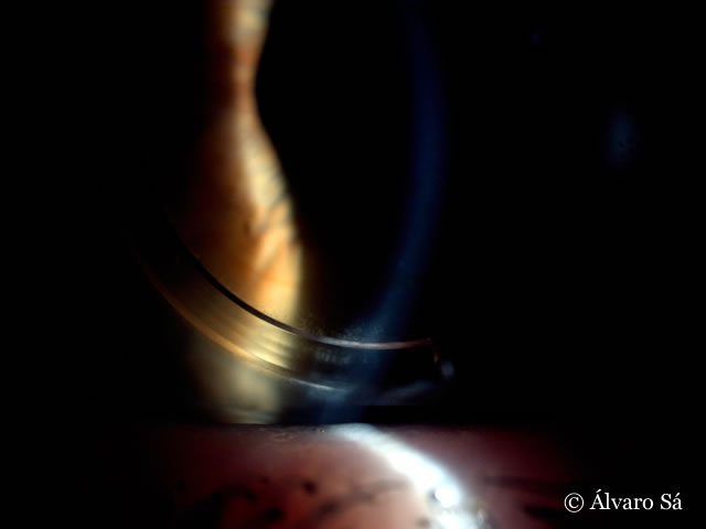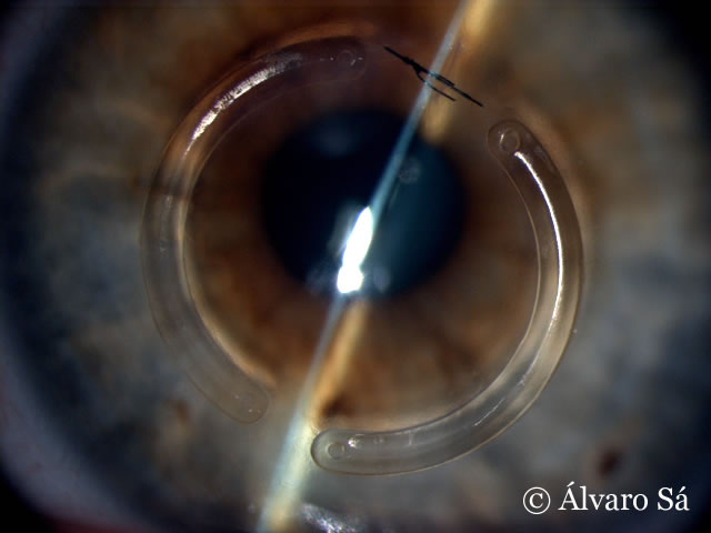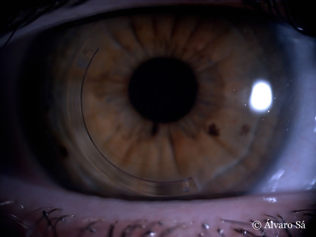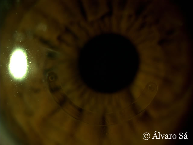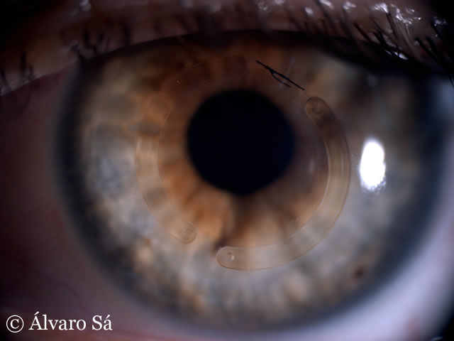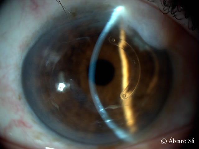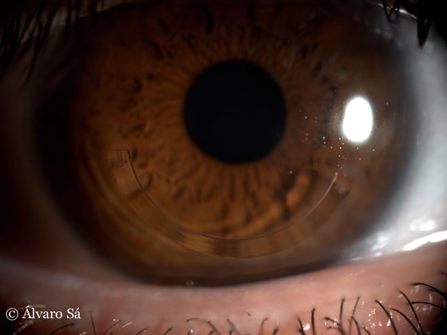 Antecedentes: Operada em 2009 ao olho esquerdo (implante de um segmento de anel de Ferrara® no lado temporal).