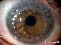 Foi proposto para anéis intra-corneanos no olho direito e transplante de córnea no olho esquerdo.