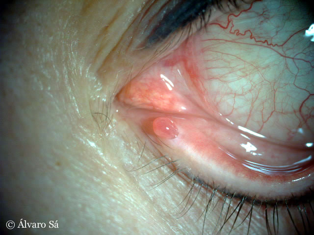 Quando a observei na consulta, apresentava tecido de granulação (por provável retenção do referido plug intracanalicular) no canalículo lacrimal inferior do olho esquerdo.